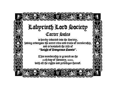 2. Ordering a hardcover Labyrinth Lord Revised Edition rulebook and a print copy of Stonehell megadungeon from Lulu.com -- at a discount! There is -- for two more days, until the end of the weekend -- a 10% discount to be had when ordering certain stuff from Lulu.com, so I took advantage of that deal to order two essential OSR products. The first is simply a hardcover version of a book I already have and use, the Labyrinth Lord rulebook. My players have been using my paperback copy at the gaming table a lot, and despite the fact that my friend Carl brings his paperback copy too, those greedy players seem to like to refer to them a fair amount as we play. So my desire to have an exclusive DM's copy of the rulebook, combined with my tendency to fetishize books in general, led me to the conclusion that I should purchase a nice, hardbound copy of the rules set I will doubtless be using for years to come. This hardbound Labyrinth Lord book was my most expensive and extravagant purchase of the day, but well-justified I think, now that I have a weekly LL campaign underway. My second Lulu purchase was the much-anticipated (by me) and much-lauded (by James Maliszewski and others) Stonehell megadungeon. I have seen the pdf preview version of Stonehell, which I liked, though I kind of need a print copy of a thing in my hands before I can really get familiar with it. So the pdf and the positive reviews of Stonehell whetted my appetite, and that combined with my general appreciation for the work of Michael Curtis -- do yourself a favor and check out his superb Dungeon Alphabet, reviewed here -- made my purchase of Stonehell in print inevitable. The fact that the multi-talented Carl also has published artwork in Stonehell only sweetens the deal (support your local artists!). I don't know exactly how I will use Stonehell in my Arandish campaign yet, but I know I will find plenty of inspiration and good material to hork (or possibly use whole-cloth) within its covers. Score!
